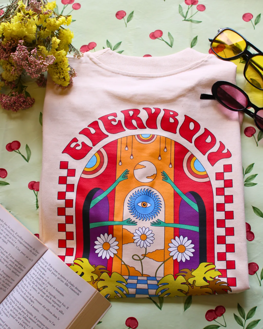 Côté visuel, Suncase nous a confié un design coloré et très graphique, inspiré par leurs ambiances sonores. Le défi : conserver toute la finesse du trait et la richesse des couleurs sur textile.