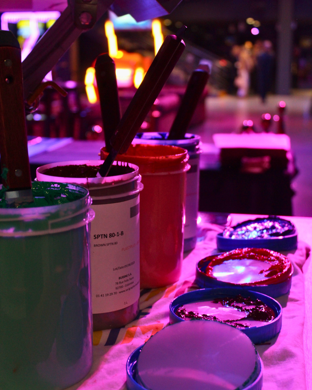 Par la suite, nous organiserons notre atelier mobile en fonction de vos besoins. Cela comprend la création des écrans de sérigraphie ou la préparation de la presse à chaud, ainsi que l’organisation de tout le matériel nécessaire pour assurer le succès de votre événement.